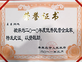 - 6、2011年董事長(zhǎng)王臣被評(píng)為2011年度秦皇島十大經(jīng)濟(jì)人物